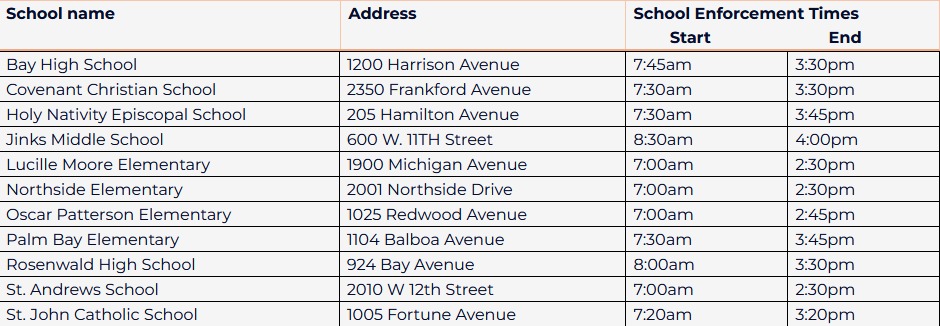 Q. Which School Zones are being camera enforced in the City of Panama City?
